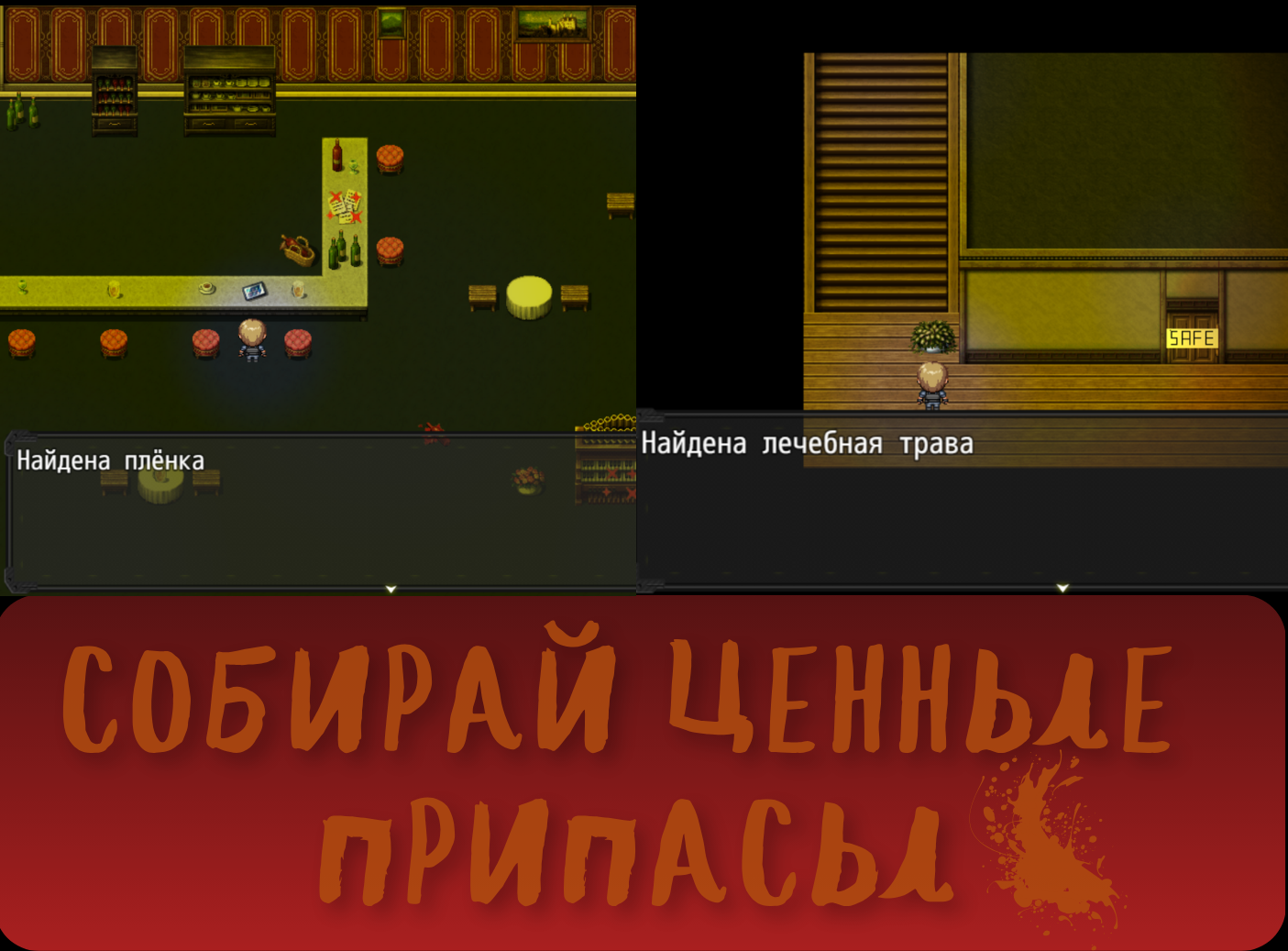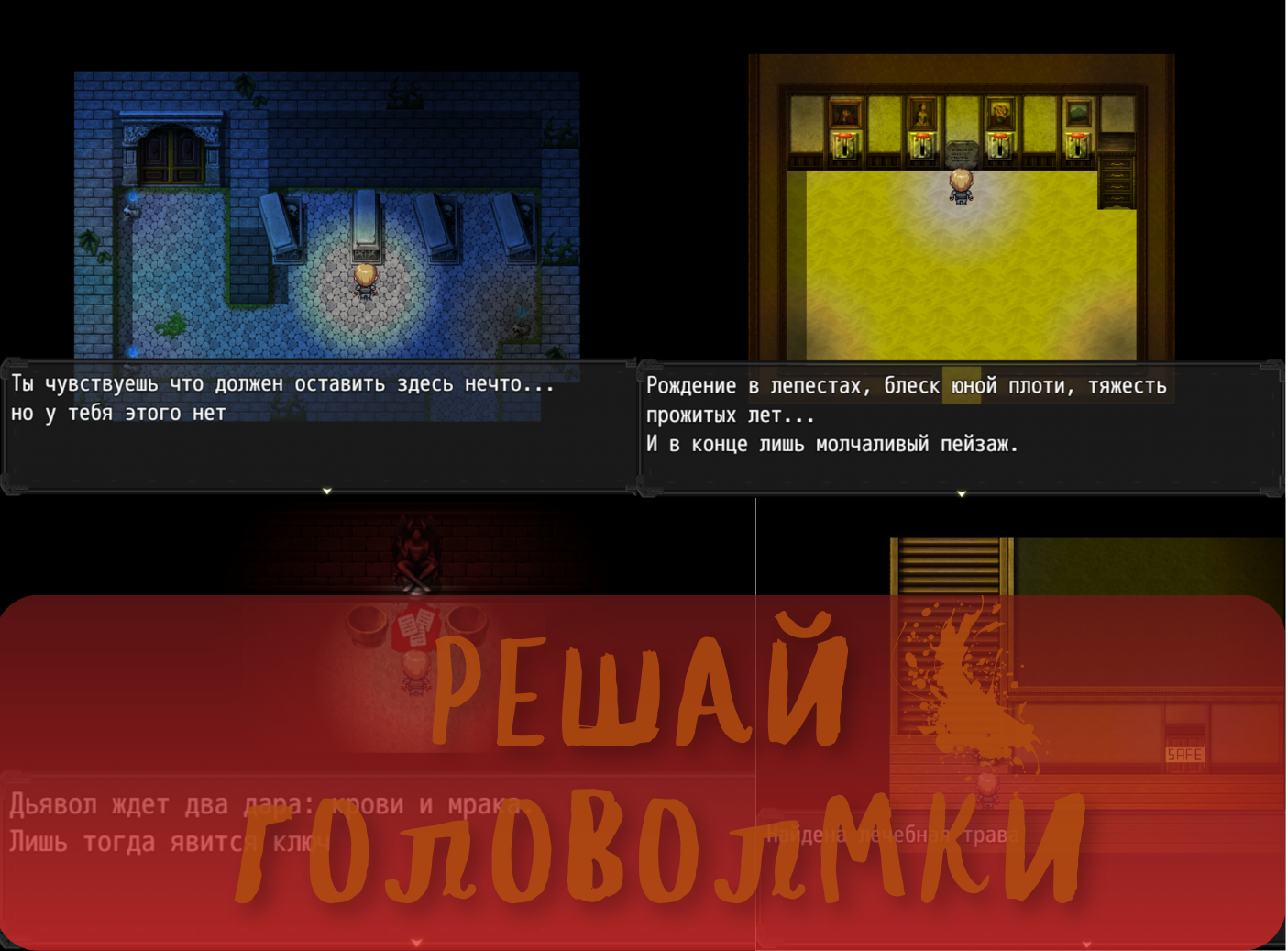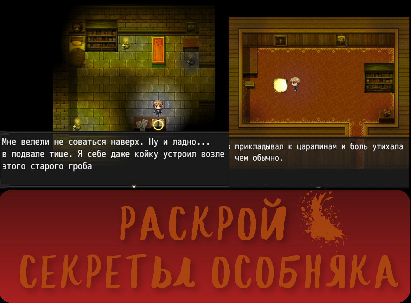 -несколько спрайтов с собственной графикой(нож, кровь, надпись safe, ключ от особняка и по мелочи, в будушем планирую добавить больше)